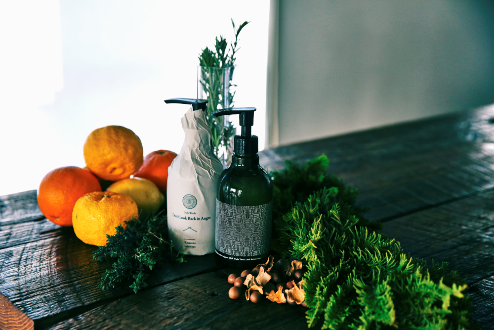 食器用洗剤 〜 Don't Look Back in Anger 〜 ちょっと面倒な、食事のあとの食器洗い。 夫婦のどちらがやるかでおしつけあったりもするこの時間を、もっと「プラスの時間」に変えられたら。 そんな思いでつくった、使うたびに豊かな香りが広がる手にも優しい洗剤です。 <香り> 様々な生活臭がするキッチンの雰囲気を、とにかく明るくリフレッシュしてくれる香りを目指しました。 オレンジ、レモン、マンダリンなどの柑橘系を中心としつつも、ゆず独自の苦みやローズマリーなどのハーブが香りに厚みと丸みを与えています。