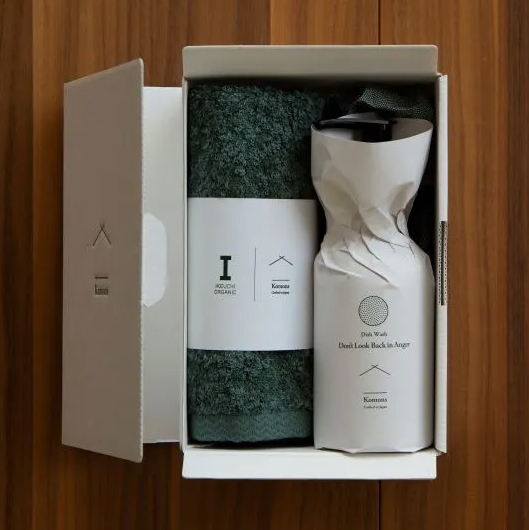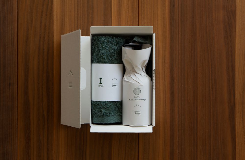 大口注文・法人のお問い合わせはこちら【IKEUCHI ORGANIC】のウォッシュタオルと、【Komons】の食器用洗剤のコラボセットです。 それぞれのアイテムの香りは、使うシーンに合わせて一つずつ異なるオリジナル。 高知ゆずや青森ヒバなどの和精油を含む、100%天然の香りです。 毎日の家事の時間をプラスに変える、使う度に豊かな気持ちになるように。 そんな想いを込めてつくった商品です。