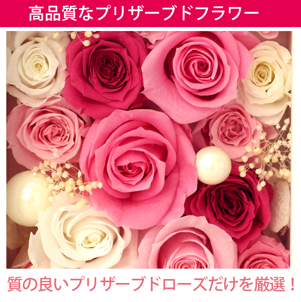 見た目も触り心地も生花そのものであることから、"枯れない魔法のお花"として人気があります。可愛い、長持ち、かつ水をあげる必要がないプリザードフラワーは女性へのプレゼントにぴったり! 誕生日、ホワイトデー、クリスマス、記念日....どんなシーンにも最適な贈り物です。