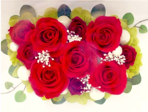 資格を持った女性スタッフが1つ1つ丁寧に作っている、IPFAのプリザードフラワー。IPFAとはプリザードフラワー協会の事で、技術を磨いた1000人以上の会員がいますが、その中でも最高の技術を持っている方がデザイナーとしてアレンジをしています。真心込めて作られているプリザードフラワーを大切な人に。