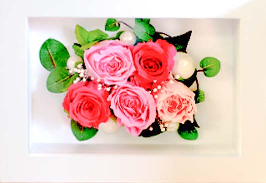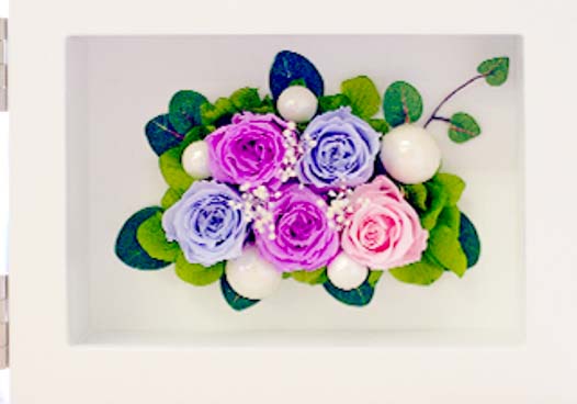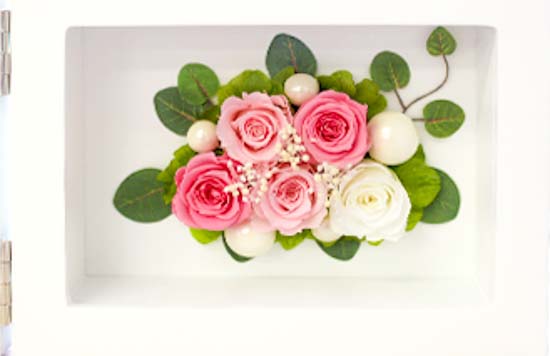思い出を飾るフォトフレームと長時間枯れないプリザーブドフラワーはまさにベストマリアージュ!プリザーブドフラワーは水やりの必要がなく、半年~1年は充分綺麗な状態で楽しめます。お部屋に置いても可愛く、花粉も飛ばないため誕生日プレゼント等、贈り物として最適です。