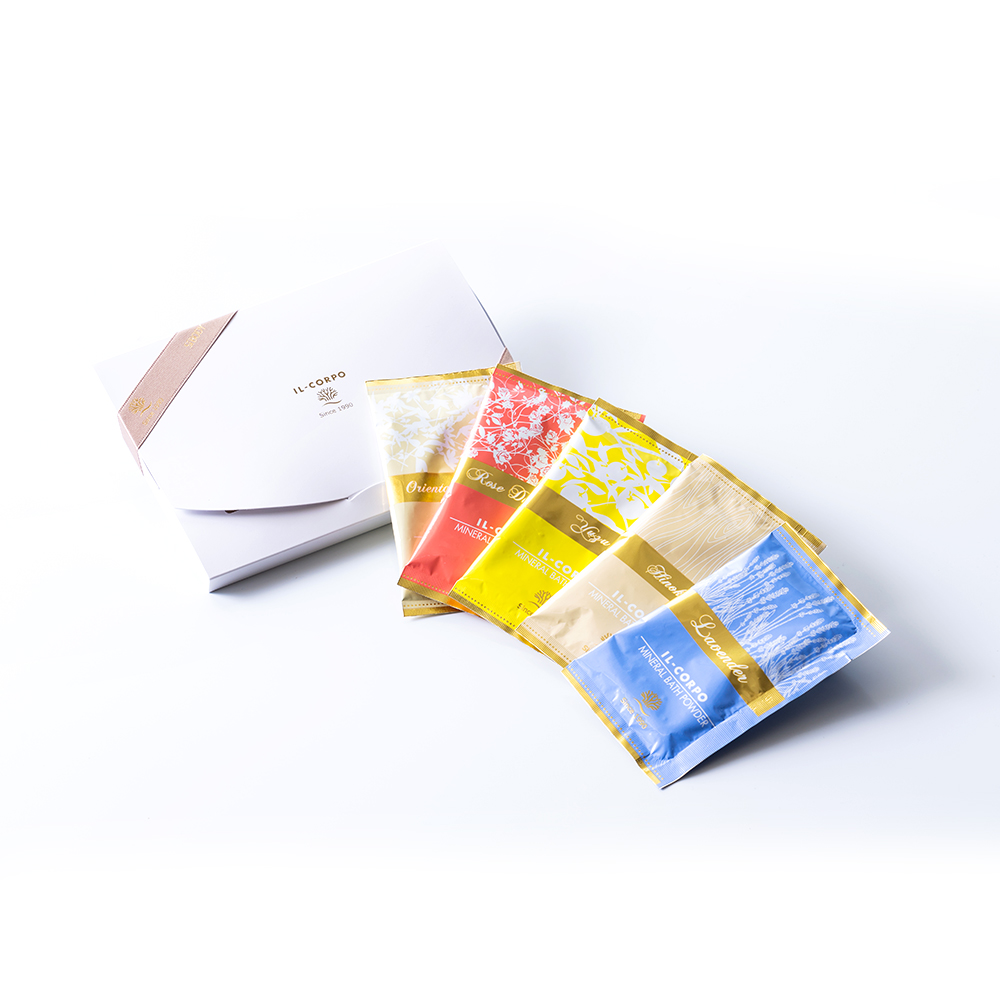 身体全体から美しくなることを目指し、海洋由来ミネラルに着目したホームケア用ボディケアブランド【IL-CORPO(イルコルポ)】からミネラルバスパウダー5包をそのまま贈れるギフトパッケージが登場しました。こころと体を解きほぐし、美と健康を作る幸せなバスタイムに演出します。