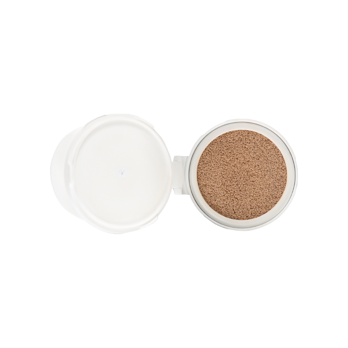 大口注文・法人のお問い合わせはこちら天然成分だけでできたクッションファンデーションです。 福岡県産「あまおう」(イチゴ果汁/保湿成分)を配合し、 しっとり潤うツヤ肌に仕上げます。 天然ミネラルの乱反射を利用することによって、 毛穴をカバー*し、まるで「ゆでたまご」のようなベースメイクに仕上げます。 石油系成分は使用せずに、シリコンフリー処方のため、軽いつけ心地です。 クレンジングは必要なく、石けんで落としていただけます。 *メイクアップ効果による