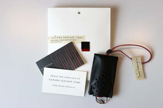 大口注文・法人のお問い合わせはこちらひとつひとつ丁寧に、手作業で開けたドットの数は全部で25個。 職人による手作りならではの、温もりが感じられるキーケースです。 かばんやベルト通しに巻き付けてご使用になれます。