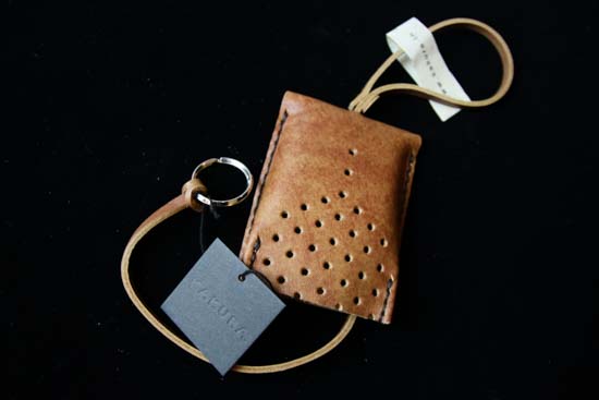 ナチュラル仕上げの牛革を使用した、デザイナーこだわりのキーケースです。表面に開けられた33個の丸穴は、全て職人の手作業によるもの。手づくりならではの優しい温もりが感じられます。
