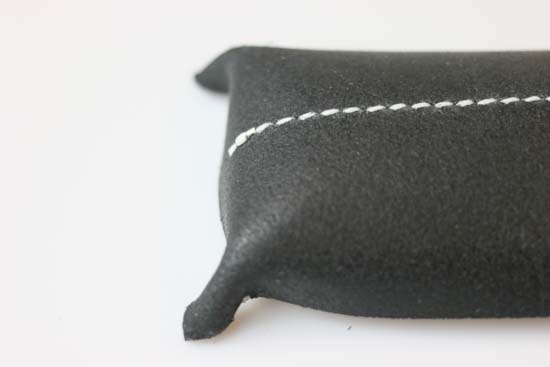 縫いに使用するのは太めの蝋引き糸。 手縫いならではの味が、素敵なアクセントになっています。 丈夫な作りには、長く使ってもらいたいという願いがこめられています。