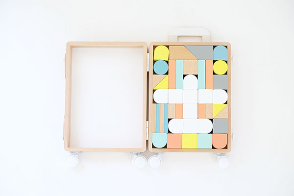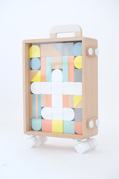 大口注文・法人のお問い合わせはこちら『コロコロコロ... いろんな かたち の つみきをつめて... きょうは どこまで おでかけしようかな?』 木製玩具の代表といえば ”つみき” です。 並べたり積み上げたりなどの構成する機能を活用して、 遊びを展開させるおもちゃです。 たくさんあるつみき のなかで、他にないオンリーワンのつみきを 作ろうと何度も打ち合わせを重ねました。 「つみき は重たくて子どもが運べない…」 「収納もかわいく、インテリアにも馴染むように…」 そして出来上がったのが「Carry me」です。 子どもたちが大好きなスーツケース(コロコロ)につみき を詰め込みました。 破線があるのでパズルとしても楽しむことができます。 コロコロとひっぱることによって体のバランス感覚を鍛え、 子どもたちの五感を育て、感性を育むつみきです 。 スーツケースに入ったカラフルなたくさんのつみきは、旅先でのたくさんの楽しい思い出です。 世代を超えて長く愛される商品になるように願っています。 ※ケースのアクリル部分は配送時等の傷を防ぐためにクリアカバーがついています。 ご使用の際にクリアカバーを外してお使いくださいませ。