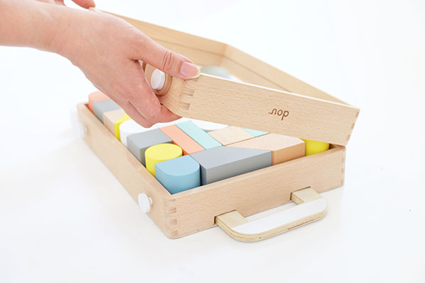 木のぬくもりを大切に安心・安全に遊べる木のおもちゃブランド【dou?(ドウ?)】のつみきです。つみきの収納もかわいく、インテリアにも馴染むようにと何度も打ち合わせして出来上がったのが「Carry me」です。遊びを通して想像力や感性を高められるよう、心を込めて手作りしています。