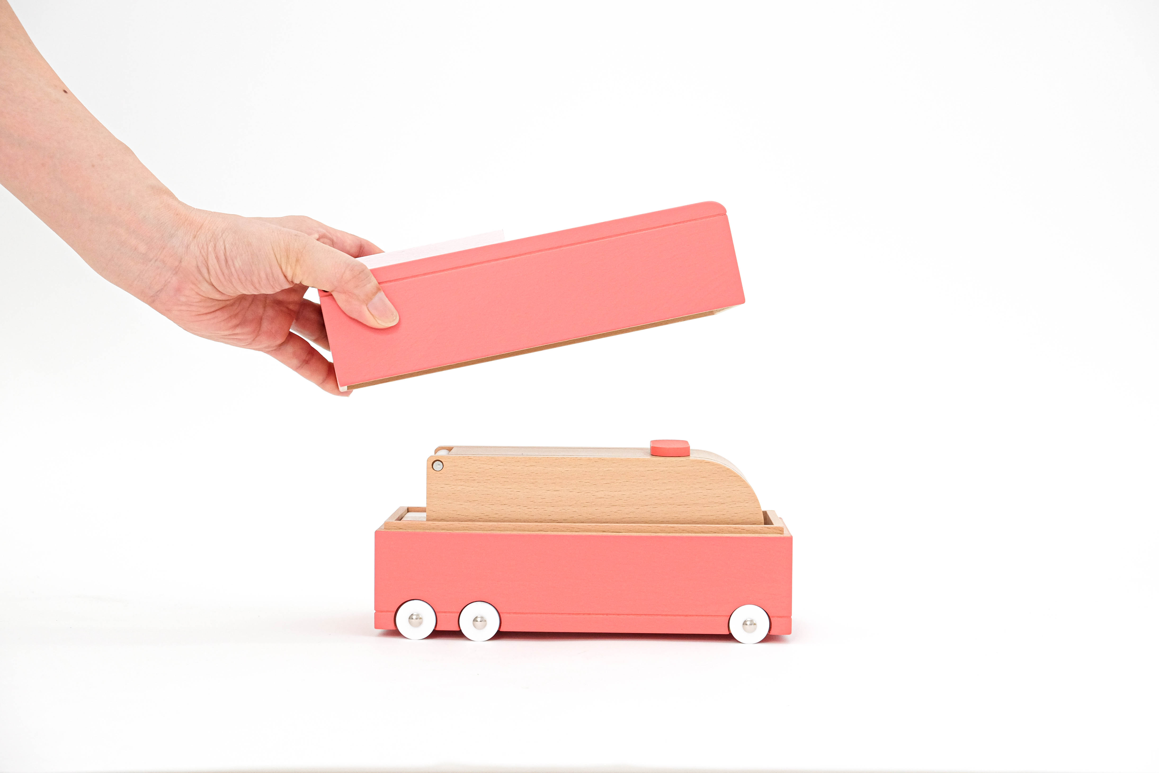 木のぬくもりを大切に安心・安全に遊べる木のおもちゃブランド【dou?(ドウ?)】の木のくるまです。マトリョーシカのように中からくるまが次から次へと登場する「ride in」です。遊びを通して想像力や感性を高められるよう、心を込めてひとつひとつ手作りしたおもちゃです。