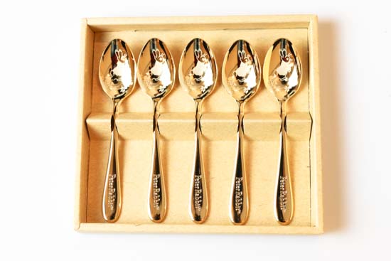 『ピーターラビット』を皿中に大胆にデザインした「ティースプーン5本のセット」。ウェッジウッドのピーターラビットの食器は、お子様だけでなく、その可愛らしさに魅了された大人の女性にも広く愛されてきました。毎日のティータイムに心地よいあたたかさを届けてくれること間違いなし。