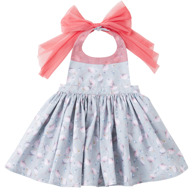 大口注文・法人のお問い合わせはこちらドレスのようなルックスがかわいいお食事エプロンです。 ブーケをイメージしたデザインで、たっぷりギャザーでふんわり広がり、スイートな印象になります。首元のリボンで後ろ姿も可愛いアイテムです。 お食事タイムを快適に過ごせる、やわらかく通気性の高い撥水生地。 ドレスアップした特別な日にも普段づかいにも、マルチに活躍します。 出産祝いやお子さんのお誕生日などの、ギフトシーンにぴったりです。