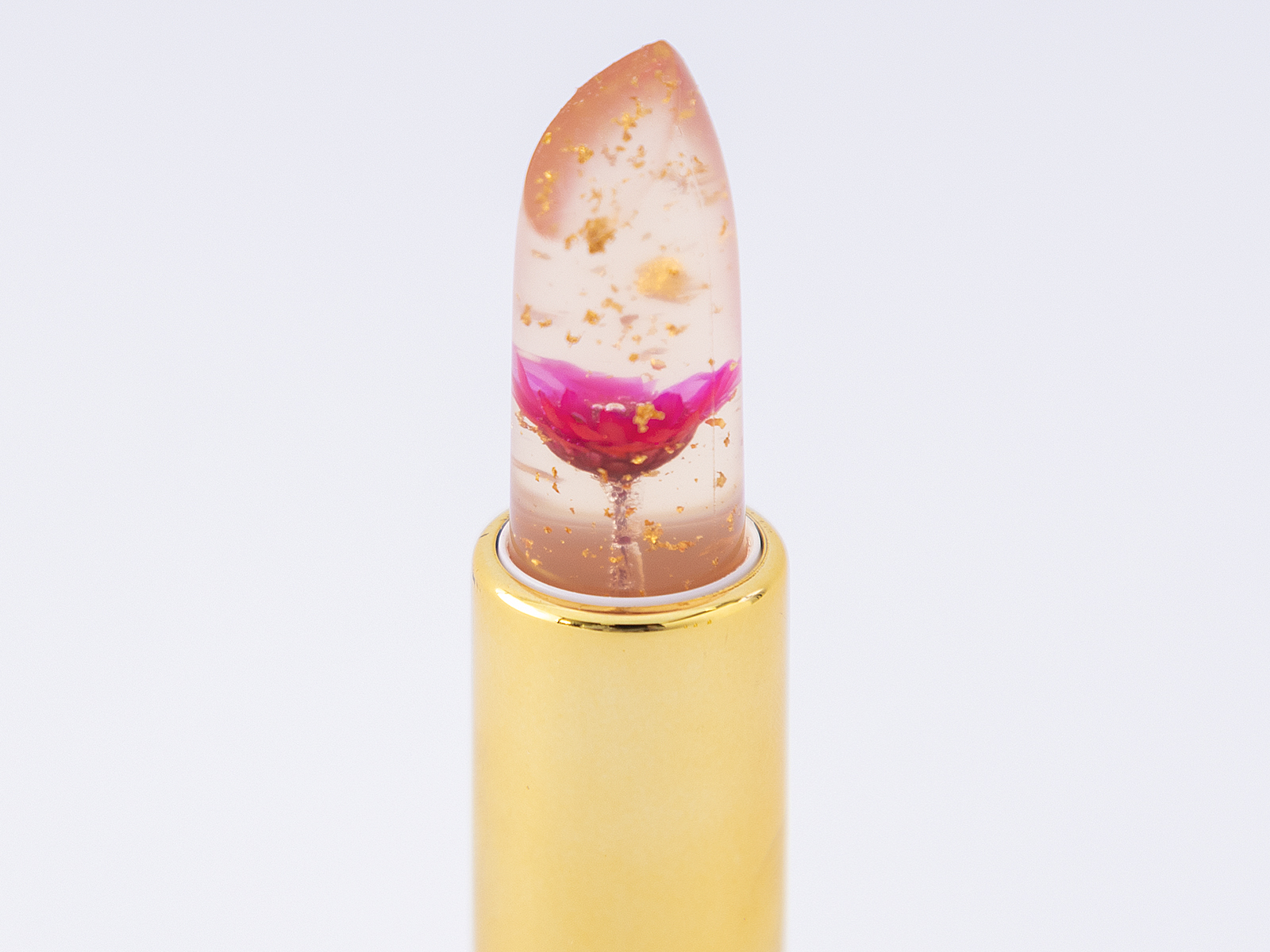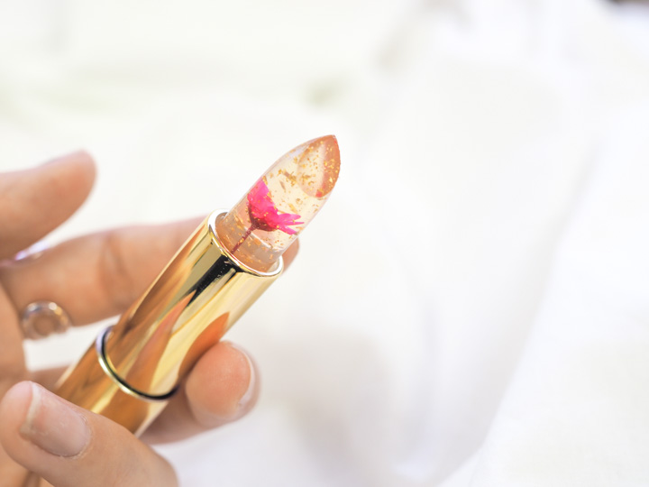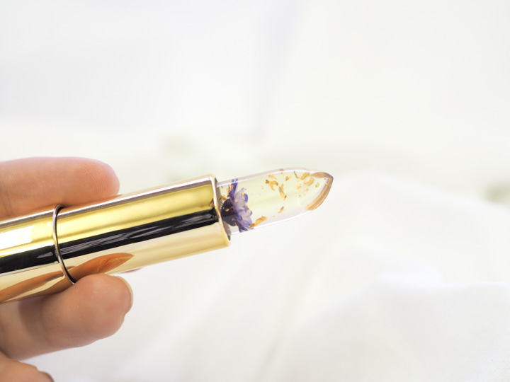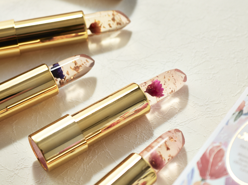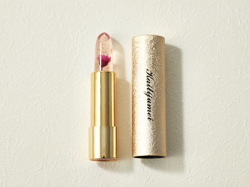 たっぷりの金箔と本物のお花が入っていて、まるでガラス細工のような可愛らしいカイリジュメイ。この可愛さからSNSで話題の商品となっています。 お花のカラーはピンク、オレンジ、レッド、パープルの4種類。リップの中に閉じ込められたお花の色に合わせて花言葉を添えて、あなたの気持ちを伝えてみませんか?
