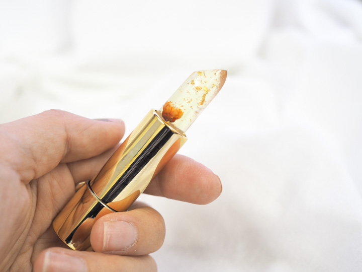 「カイリジュメイ」を製作するメーカーは、元々は他社製品のOEMを行う工場でした。2015年、日本やドイツの原料を使った新しい半透明の原料と出会いました。しかし当時は非常に高価な原料であったため、なかなか取扱いをしたり使い道を考えるメーカーはいませんでした。 ある日、 日本の写真家による、氷の中に花が閉じ込められた写真を見た開発担当が、透明なリップに花を閉じ込めたら可愛いのではないかと発想しました。しかし開発は難航。当時原料は透明ではなく、透明なリップは湿度や温度変化に敏感で完全に透明にするために何度も施策を繰り返しました。 その後世界的にヒットしたため、次は小花が入手困難になり買い回りに奔走。 透明なリップの金箔は純度98%のものを使用しており、唇に載せた瞬間溶けていきます。他のメーカーでは偽物の金箔を使っていたり、純度が低いものを使っているため、塗った時の効果が全く異なります。上述の通り海外の高価な原料を惜しみなく使っており、その世界観が発売5年以上経った今でも世界中の女性を魅了している理由です。