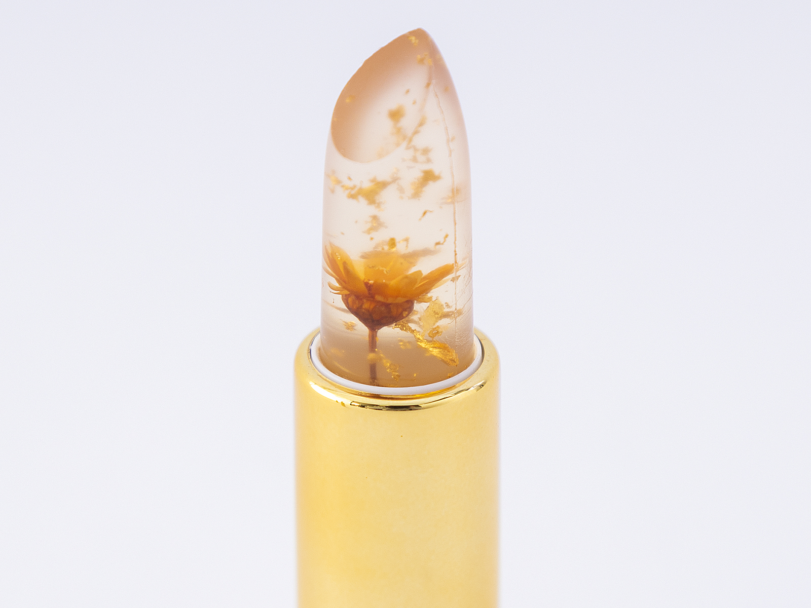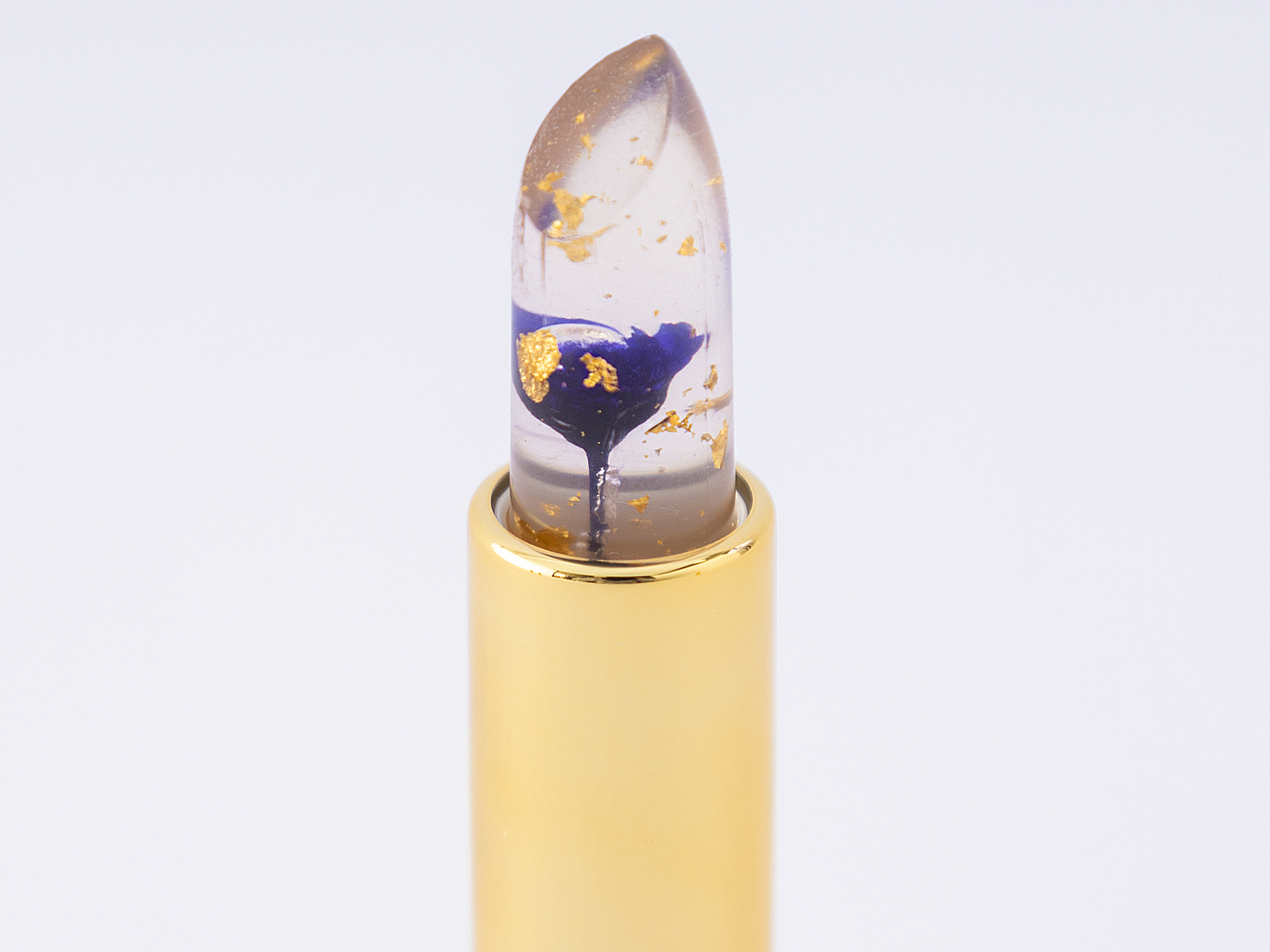 透き通ったリップの中にあるのは、本物のドライフラワーと金箔。ドライフラワーはお花の開き方や色味がひとつひとつ異なります。同じリップは一つとない、あなただけのフラワーリップです。 ひとつひとつお花を入れる作業は手作業のため、機械では作れない技術とクオリティーを結集した商品となっております。なお、生産量が量産できる商品と異なり少量生産となっています。