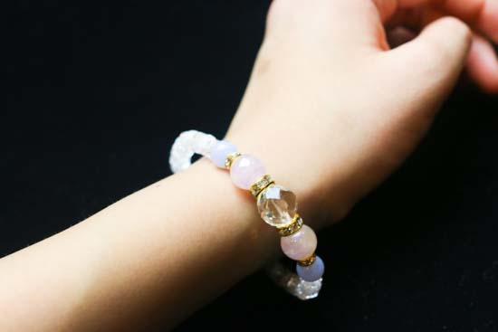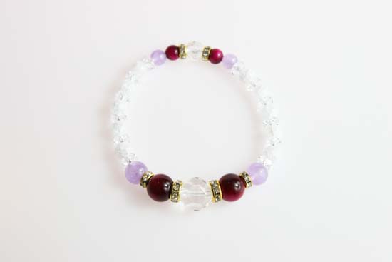 大口注文・法人のお問い合わせはこちらプリンセスのティアラをイメージしたデザインのブレスレット。 キラキラ輝くスターカット水晶は見ているだけで乙女心をくすぐられます。 内容 □サイズ 内径/約15㎝~16㎝ フリーサイズ/レディース向け(オペロンゴム使用) □石の種類/サイズ/石言葉 ☆16-BR‐0005-01/オーロラローズクォーツ・ブルーレースカルセドニー オーロラローズクォーツ10㎜,6㎜・恋愛運・美容・健康運 ブルーレースカルセドニー8㎜,6㎜ クラック水晶・6㎜・全体運・浄化 スターカット水晶・12㎜・全体運・浄化 ボタンカット水晶2×4㎜,3×6㎜・全体運・浄化 ☆16-BR‐0005-02/ピンクタイガーアイ・ラベンダーアメジスト ピンクタイガーアイ・10㎜,6㎜・金運・仕事運・恋愛運 ラベンダーアメジスト・8㎜,6㎜・癒し・ストレス解消 クラック水晶・6㎜・全体運・浄化 スターカット水晶・12㎜・全体運・浄化 ボタンカット水晶2×4㎜,3×6㎜・全体運・浄化 ☆16-BR‐0005-03/カーネリアン・ゴールデンオーラ カーネリアン・10㎜,6㎜・仕事運・活力アップ ゴールデンオーラ・8㎜,6㎜・金運・センスアップ クラック水晶・6㎜・全体運・浄化 スターカット水晶・12㎜・全体運・浄化 ボタンカット水晶2×4㎜,3×6㎜・全体運・浄化 ☆16-BR‐0005-04/アクアオーラ・オブシディアンオパール アクアオーラ・10㎜,6㎜・金運・才能開花 オブシディアンオパール・8㎜,6㎜・希望・直観力・積極性 クラック水晶・6㎜・全体運・浄化 スターカット水晶・12㎜・全体運・浄化 ボタンカット水晶2×4㎜,3×6㎜・全体運・浄化 ☆16-BR‐0005-05/アマゾナイト・アクアオーラ アマゾナイト・10㎜,6㎜・ストレス解消・思考力アップ アクアオーラ・8㎜,6㎜・金運・才能開花 クラック水晶・6㎜・全体運・浄化 スターカット水晶・12㎜・全体運・浄化 ボタンカット水晶2×4㎜,3×6㎜・全体運・浄化 ☆16-BR‐0005-06/ラベンダーアメジスト・コスモオーラ ラベンダーアメジスト10㎜,6㎜・癒し・ストレス解消 コスモオーラ8㎜,6㎜・金運・才能開花 クラック水晶・6㎜・全体運・浄化 スターカット水晶・12㎜・全体運・浄化 ボタンカット水晶2×4㎜,3×6㎜・全体運・浄化 □金属パーツ/サイズ/カラー/素材 ロンデル・7㎜,6㎜・ゴールド・メッキ ※金属アレルギーのある方はご遠慮ください。