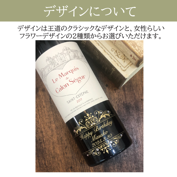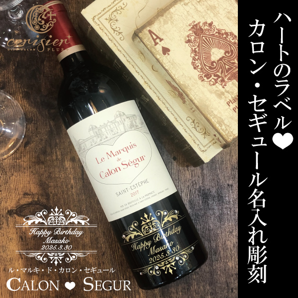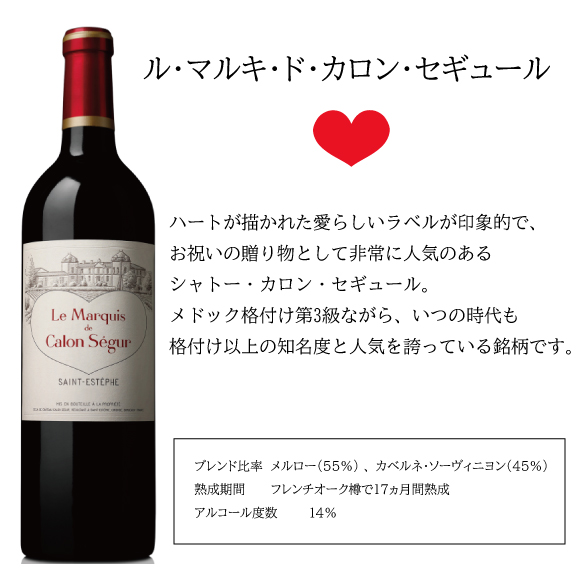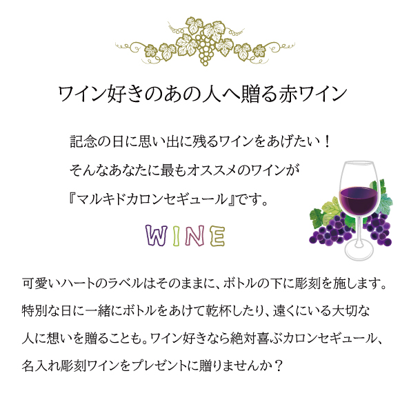 | お届け内容 | ハートのラベルの赤ワイン|カロンセギュール名入れ彫刻 化粧箱 |