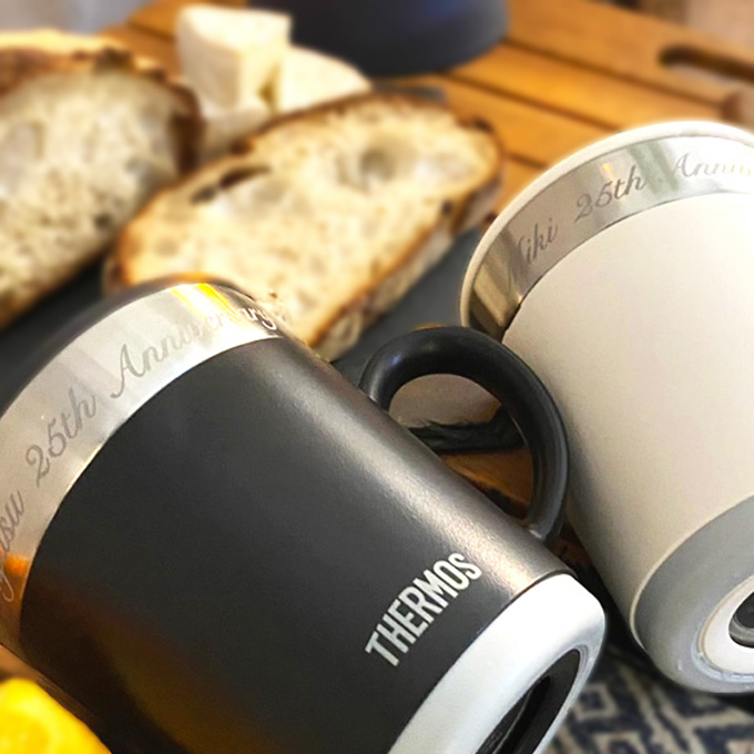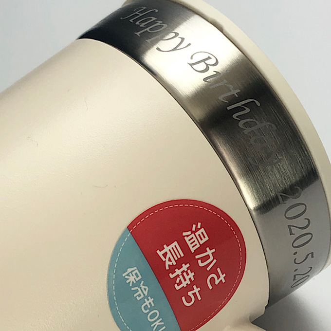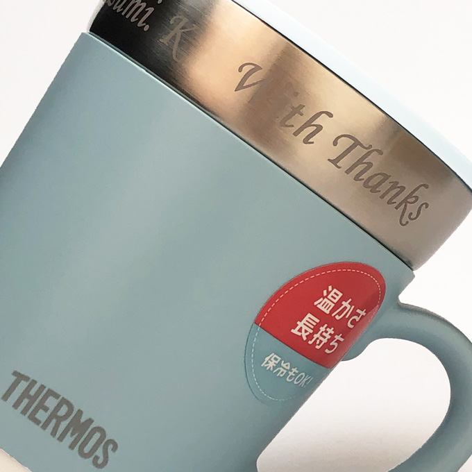 大口注文・法人のお問い合わせはこちら人気のサーモスマグカップ!セリジエプラスではステンレス部分にさりげなく彫刻を施すのでオフィスやフォーマルな席でも安心してお使いいただけます。書体も英語日本語10種類からお選びいただけるので、退職祝いやご友人へのプレゼント、誕生日のギフト、父の日母の日など様々なシーンにご使用いただけます。