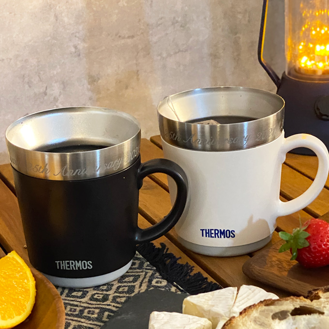 冷たさも美味しさもキープできるTHERMOS真空断熱マグは屋内でも屋外どちらでも使える割れない実用的なプレゼントなので幅広い年代の方に喜ばれます。
