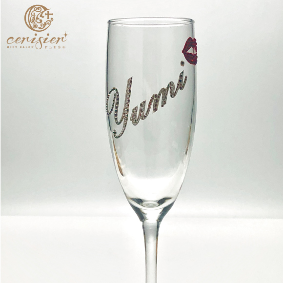 最高級のスワロフスキーでお名前を装飾した、高級感あふれるオリジナルシャンパングラスです。
