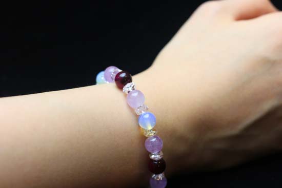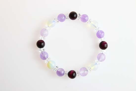 大口注文・法人のお問い合わせはこちらカラフルでフレッシュなカラーはまるで甘い果実のよう。思わず食べてしまいそうなそんなブレスレットです。 内容 □サイズ 内径/約15㎝~16㎝ フリーサイズ/レディース向け(オペロンゴム使用) □石の種類/サイズ/石言葉 ☆16-BR‐0006-01/ピンクカルセドニー・ブルーレースカルセドニー・ムーンストーン ピンクカルセドニー・8㎜・恋愛運 ブルーレースカルセドニー・8㎜・人間関係・判断力アップ ムーンストーン・8㎜・恋愛運・癒し ボタンカット水晶・3×6㎜・全体運・浄化 ☆16-BR‐0006-02/ラベンダーアメジスト・アマゾナイト・ブルーレースカルセドニー ラベンダーアメジスト・8㎜・癒し・ストレス解消 アマゾナイト・8㎜・ストレス解消・思考力アップ ブルーレースカルセドニー・8㎜・人間関係・判断力アップ ボタンカット水晶・3×6㎜・全体運・浄化 ☆16-BR‐0006-03/ピンクタイガーアイ・ラベンダーアメジスト・オブシディアンオパール ピンクタイガーアイ・8㎜・仕事運・金運 ラベンダーアメジスト・8㎜・癒し・ストレス解消 オブシディアンオパール・8㎜・希望・直観力・積極性 ボタンカット水晶・3×6㎜・全体運・浄化 ☆16-BR‐0006-04/アマゾナイト・アクアオーラ・オブシディアンオパール アマゾナイト・8㎜・ストレス解消・思考力アップ アクアオーラ・8㎜・金運・才能開花 オブシディアンオパール・8㎜・希望・直観力・積極性 ボタンカット水晶・3×6㎜・全体運・浄化 ☆16-BR‐0006-05/カーネリアン・ゴールデンオーラ・アラゴナイト カーネリアン・8㎜・仕事運・活力アップ ゴールデンオーラ・8㎜・金運・センスアップ アラゴナイト・8㎜・人間関係・才能開花 ボタンカット水晶・3×6㎜・全体運・浄化 ☆16-BR‐0006-06/オーロラローズクォーツ・チェリークォーツ・マザーオブパール オーロラローズクォーツ・8㎜・恋愛運・美容・健康 チェリークォーツ・8㎜・恋愛運・仕事運 マザーオブパール・8㎜・家庭運・癒し ボタンカット水晶・3×6㎜・全体運・浄化