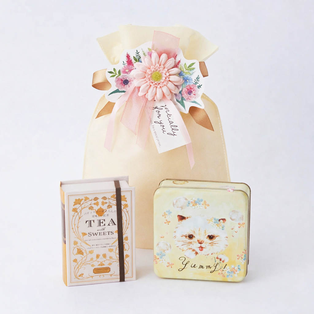 【ラッピング付き/猫好きに贈る!】こねこのクッキー缶と選べる紅茶のセット