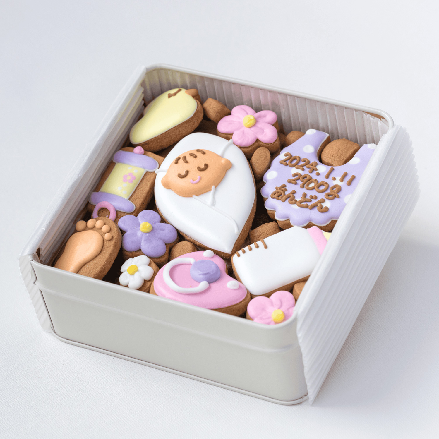【名入れ・メッセージ入れ無料】Babyクッキー缶(女の子ver)カラフルで可愛いアイシングクッキー缶