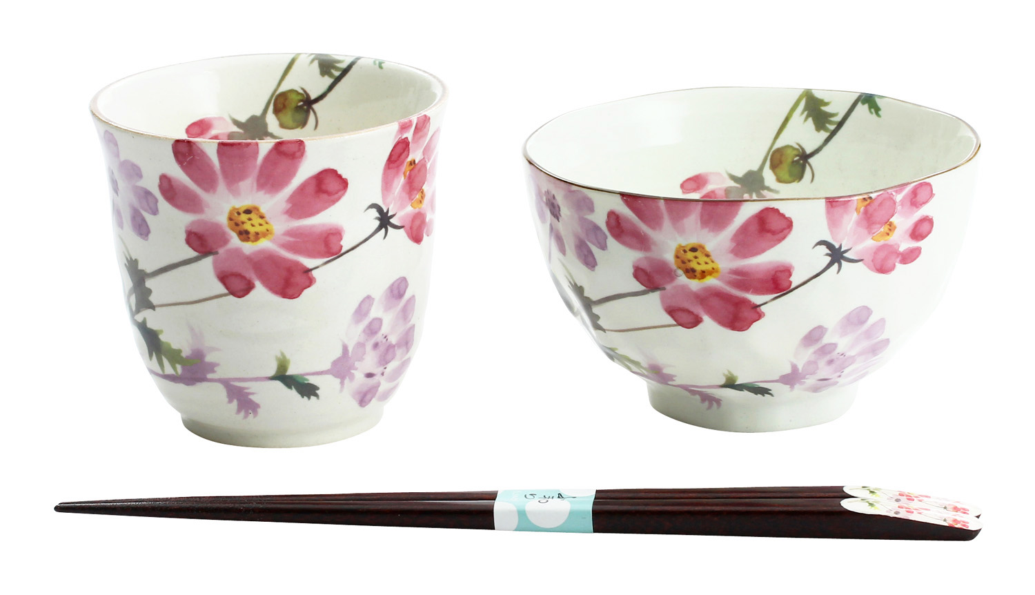 花さと飯碗湯呑 コスモス(天宝箸付)